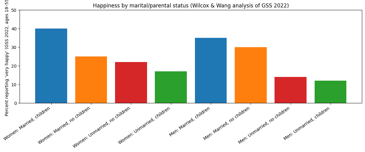 Wilcox, W. B., & Wang, W. (2023, September 12). Who is happiest? Married mothers and fathers, per the latest General Social Survey. Institute for Family Studies.